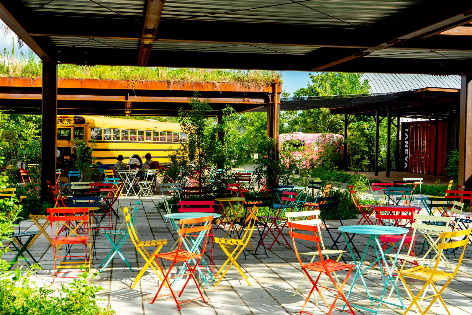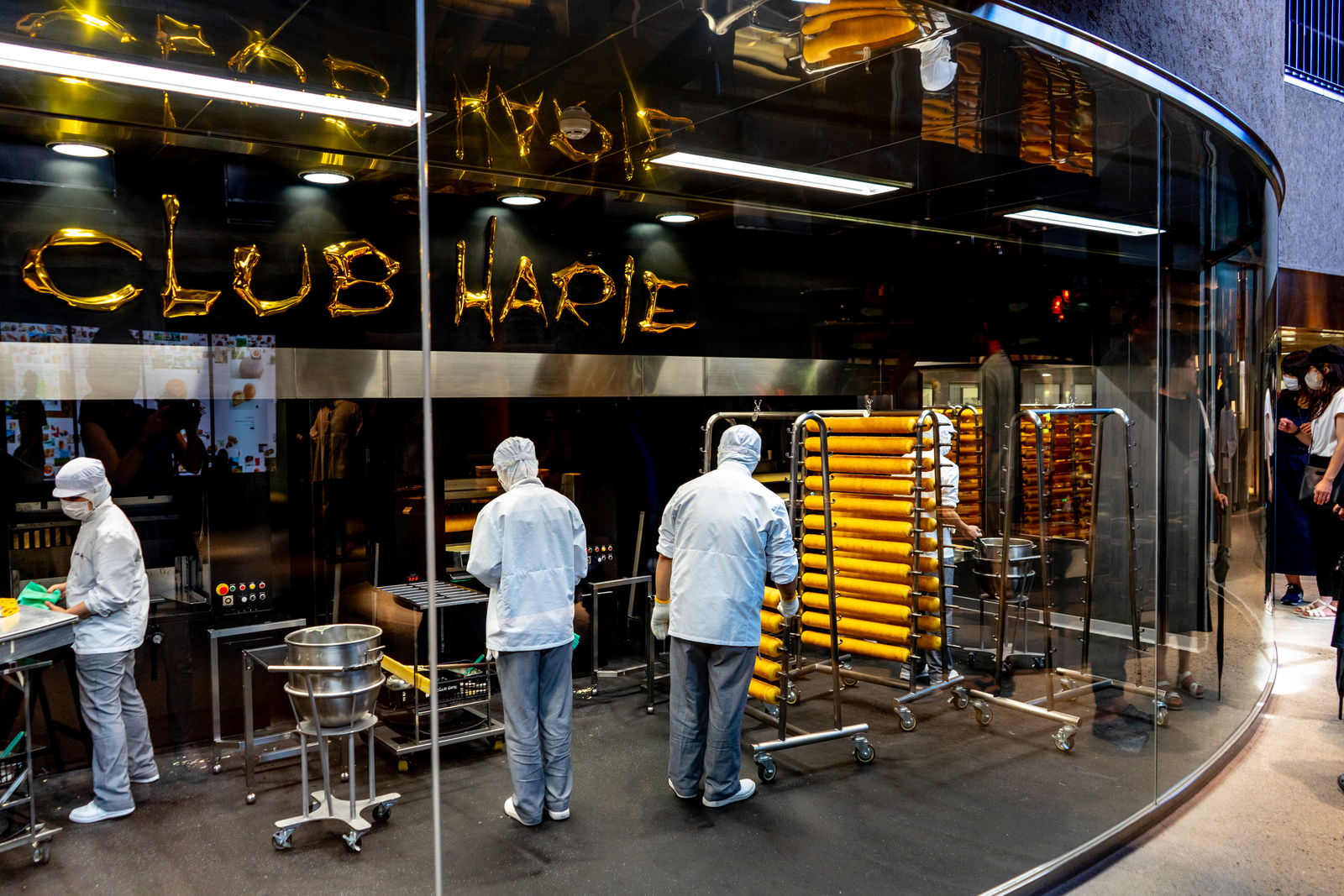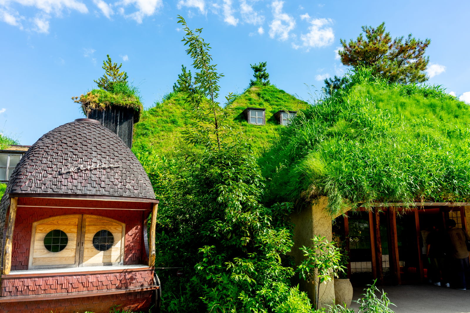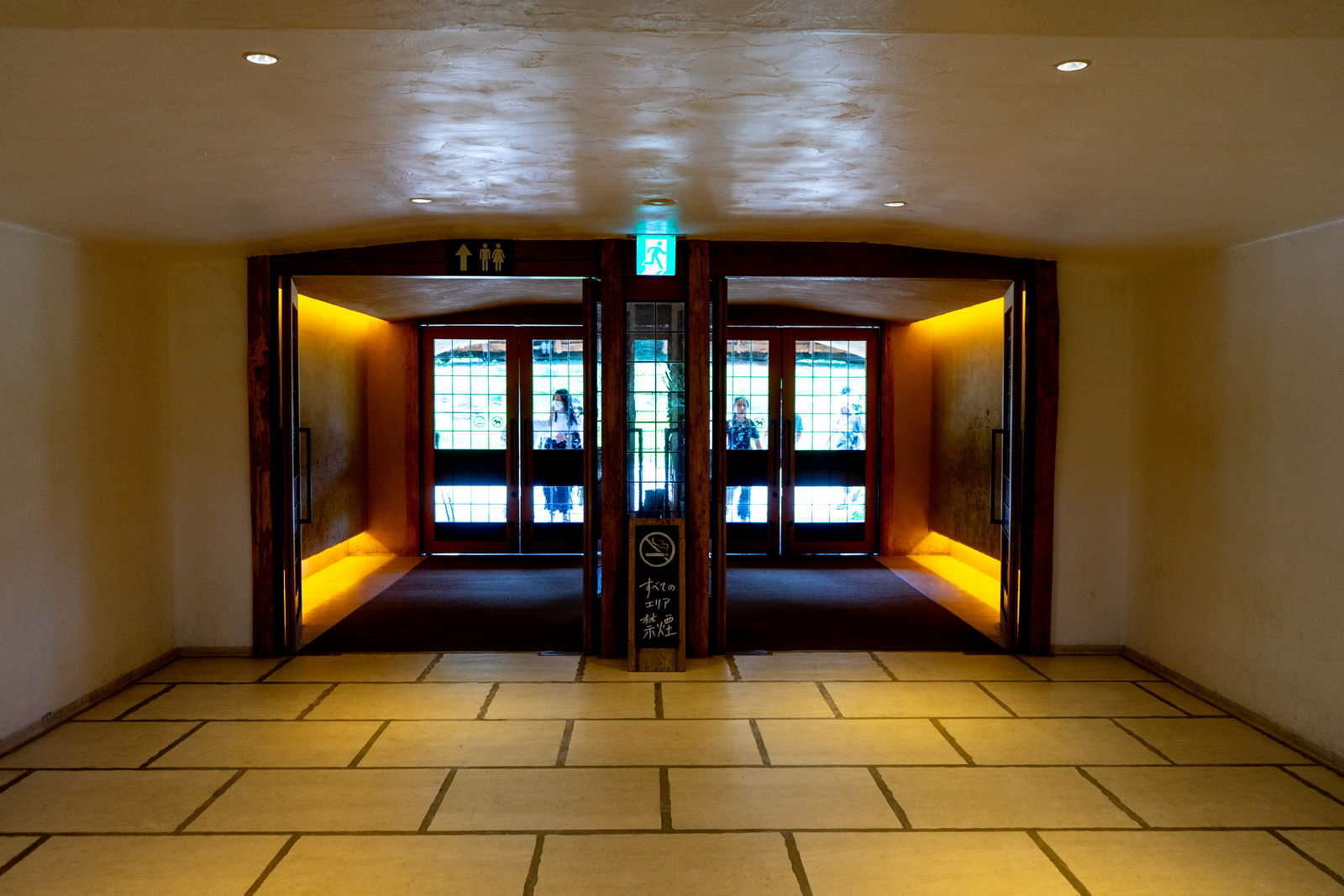 和・洋菓子のメインショップとカフェが併設された草屋根の建物は周辺の自然豊かな風景に溶け込むように設計されており、ゼミ生は建物と周辺環境との繋がりに注目しながら施設内を散策しました。