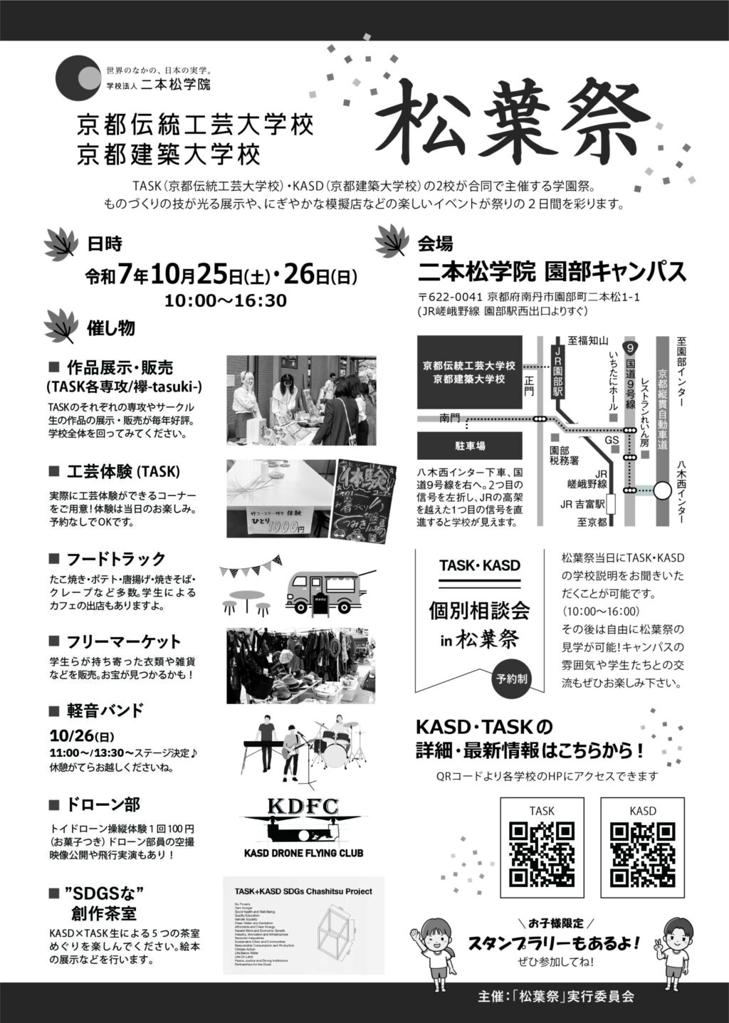 TASK(京都伝統工芸大学校)とKASD(京都建築大学校)が合同で主催する学園祭「松葉祭」