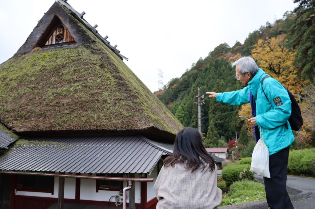 美山町では、約30軒ほどの茅葺き家屋が現存する『かやぶきの里』を散策。約20年から30年周期で葺き替えされている茅葺きの日本家屋の特徴や見どころ、日本古来の建築美を感じ取りました。