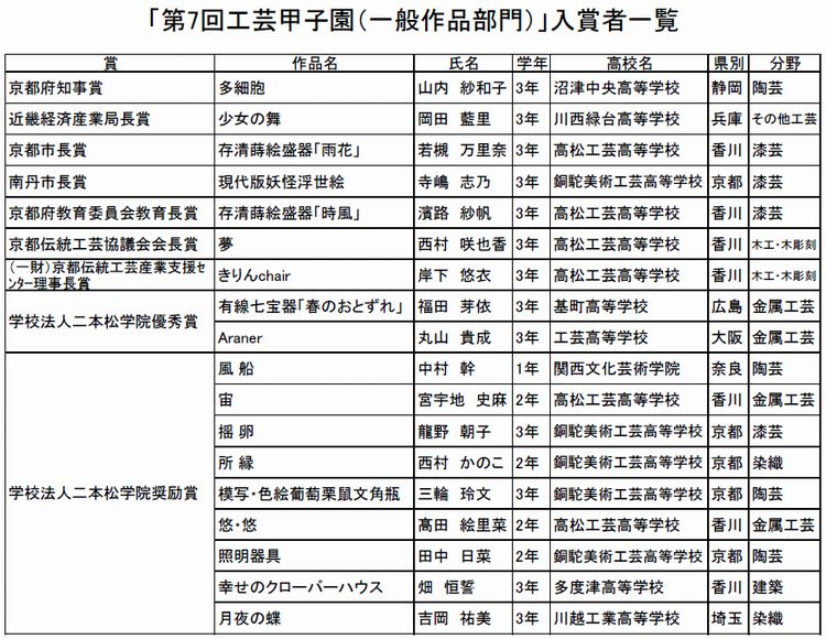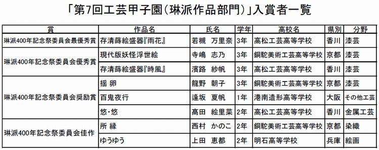 10月15日(木)に第7回工芸甲子園の一般作品部門・琳派作品部門の審査会が行われ、一般作品部門18点、琳派作品部門8点の受賞作品が決定しました。
