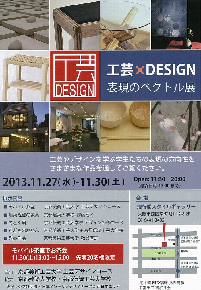 11月27日(水)〜11月30日(土)まで、グループ校 京都美術工芸大学工芸デザインコースが主催する「工芸×DESIGN 表現のベクトル展」に、本校の安藤眞吾インテリア・プロダクトデザイン研究室の学生も、自身がデザイン・制作した家具を出品します。