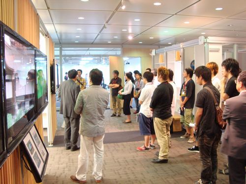 二本松学院(京都美術工芸大学・京都建築大学校・京都伝統工芸大学校)では、産学連携事業の一つとしてオフィス関連事業のトップメーカーである内田洋行とのワークショップを実施しています。ワークショップは「伝統工芸を活かした新しい空間づくり」をテーマに計3回を予定しています。第1回目として9月18日(火)に大阪にある内田洋行のショールーム「大阪ユビキタス協創広場CANVAS」の見学が行わました。名誉会長 向井眞一様の講演も特別に実施していただきました。3校の希望者計52名の学生が参加し、熱心にメモを取る姿が見られました。