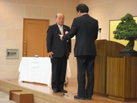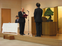 当日は、京都府山田知事様が府議会の為、京都府庁文教課の中西文章課長様より表彰状の授与と山田京都府知事様からの祝辞の代読をいただきました。