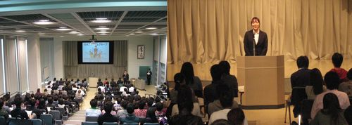 本校には九州地方からの入学生も多いことから、昨年に続き、わざわざ担当の方にご来校いただいて、本校ホールでの実施となりました。セキスイハイム九州株式会社への応募希望者以外にも、各地域のセキスイハイム応募希望者の学生も多数参加しました。また2010年度内定者の在校生によるトークも実施。学生にとっては企業研究の良い機会となり、また就職に対する意欲をより向上させることができました。