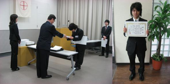 平成21年度卒業生 森田修平さんの卒業設計作品が、見事日本建築学会近畿支部主催「第64回卒業設計コンクール」で入選し、その授賞式が、5月25日に行われました。