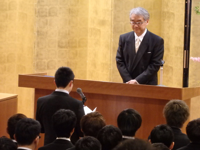 式では、学校長による入学許可の後、学校長式辞、理事長祝辞へと続きました。