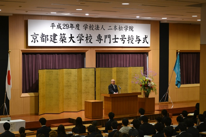 2年間の専門学校の課程を修了した学生の、専門士号授与式が行われました。