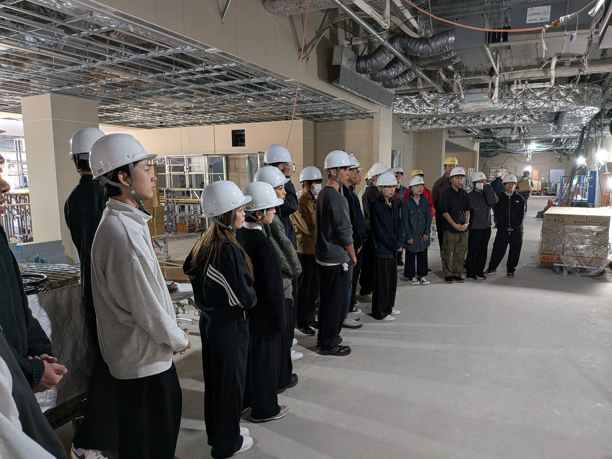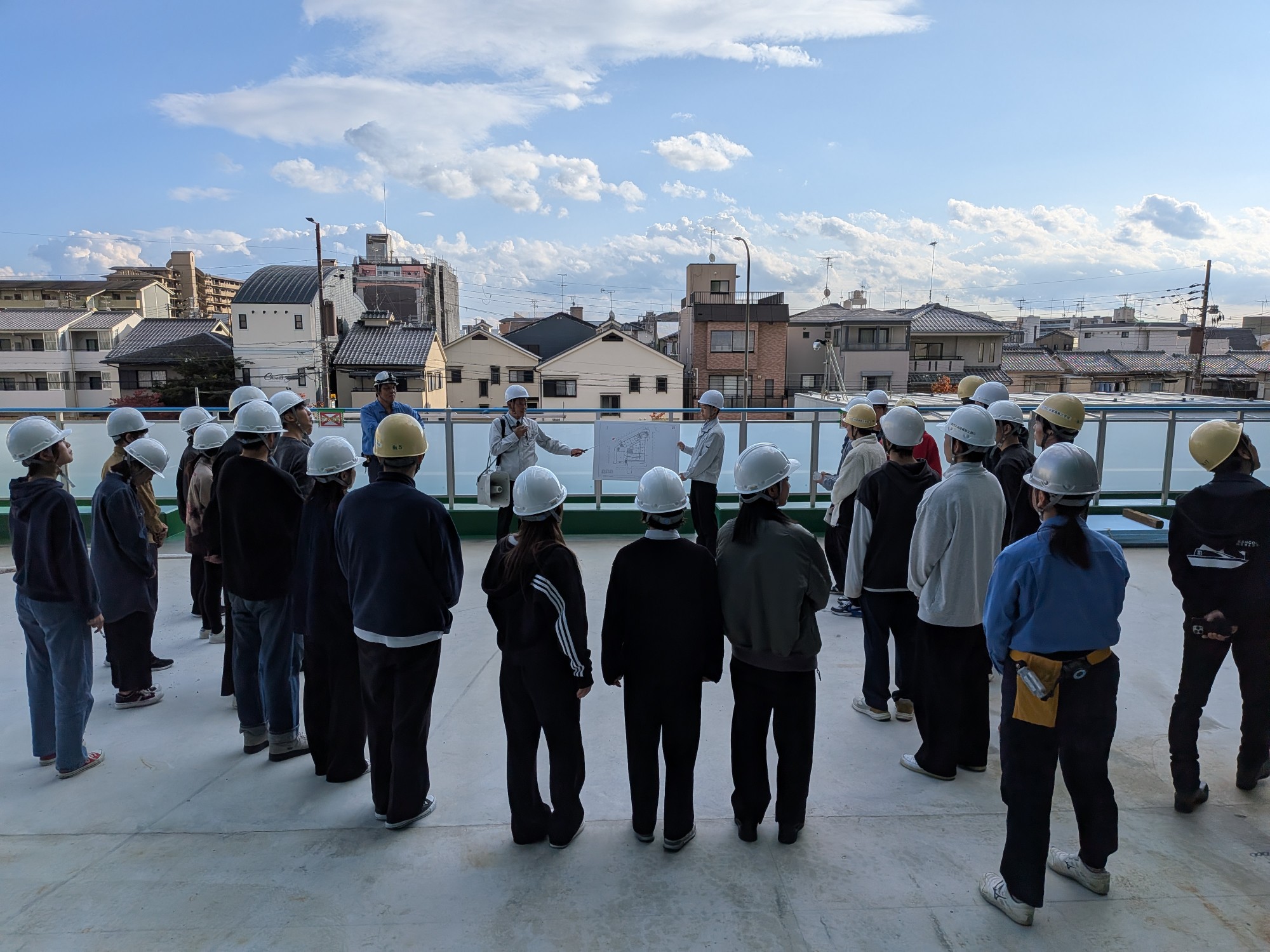 3年生 建設現場見学研修in佛教大学 二条キャンパス Topics 2025.11.04 11月2日(土)3年生 建築学科生(25名)による建設現場見学研修が行われました。学生たちは実際の現場で、建設の工程や安全管理について学び、教室では得られない貴重な体験をすることができました。 現場の担当者の方々からは、プロとしての責任感やチームワークの重要性についてもお話をいただき、学生たちは真剣な表情で耳を傾けていました。 この研修を通して、建設業の魅力ややりがいを実感した学生も多く、将来の進路を考えるうえで大きな刺激となったようです。 【希望の学生対象】海外研修旅行が決まりました